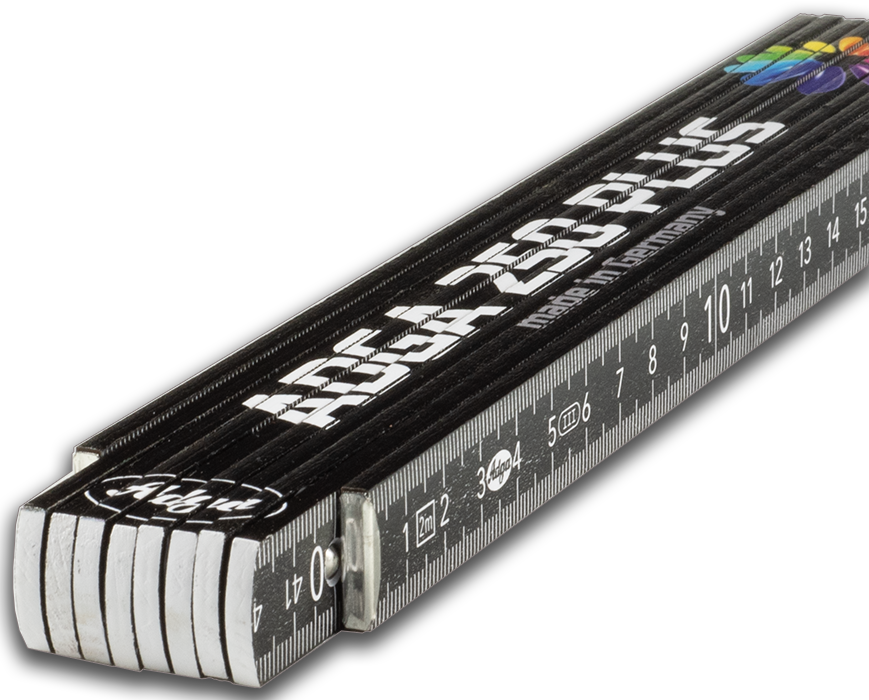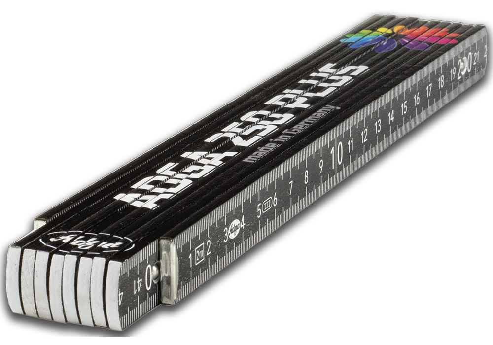 Unsere ADGA 250 Plus Zollstöcke sind für Werbezwecke bestens geeignet, da sie sauber und hochwertig verarbeitet sind und sich durch eng anliegende Glieder auszeichnen – eben Zollstöcke in Handwerkerqualität!