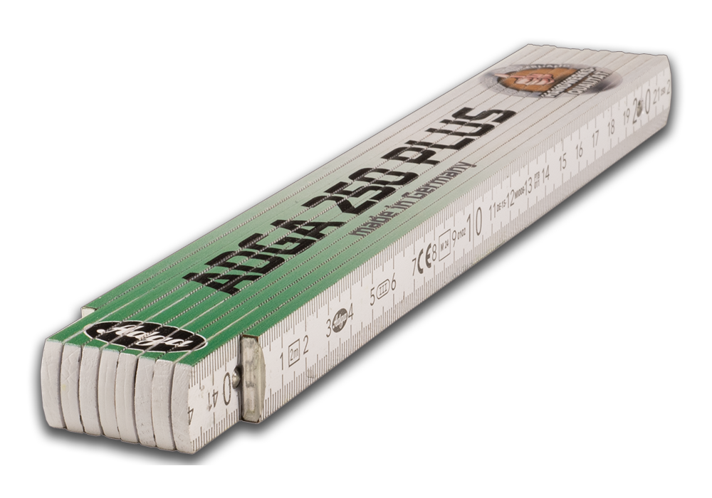 Unsere ADGA 250 Plus Zollstöcke sind für Werbezwecke bestens geeignet, da sie sauber und hochwertig verarbeitet sind und sich durch eng anliegende Glieder auszeichnen – eben Zollstöcke in Handwerkerqualität!