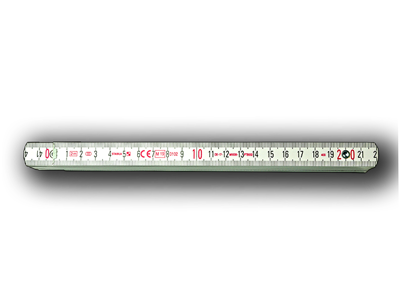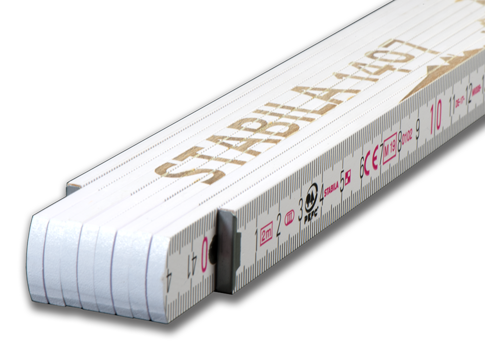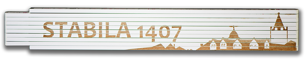 Stabila 1407 - 2m Holz Zollstock weiß, Incl. Lasergravur - Metallgelenke